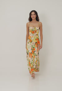 שמלת מקסי קלה ואוורירית עם כתפיות דקות ועיטורי כיווצים בחזה שמעניקים לה מראה מחמיא ונשי. ההדפס הפרחוני הצבעוני משדר וייב קיצי מושלם, והגזרה הנשפכת מבטיחה נוחות לכל היום.