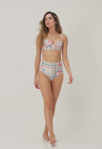 תחתון ביקיני בגזרה גבוהה ומחמיאה, עם קצוות גליים גזורים וגזרת תחתון לטינית שמדגישה את הסילואט שלך בצורה מושלמת. ההדפס הפרחוני בסגנון פאצ'ים מעניק מראה אומנותי ונצחי, שמשתלב בקלות עם כל טופ ביקיני אהוב. שילוב מושלם של נוחות וסטייל לכל חופשה שטופת שמש.