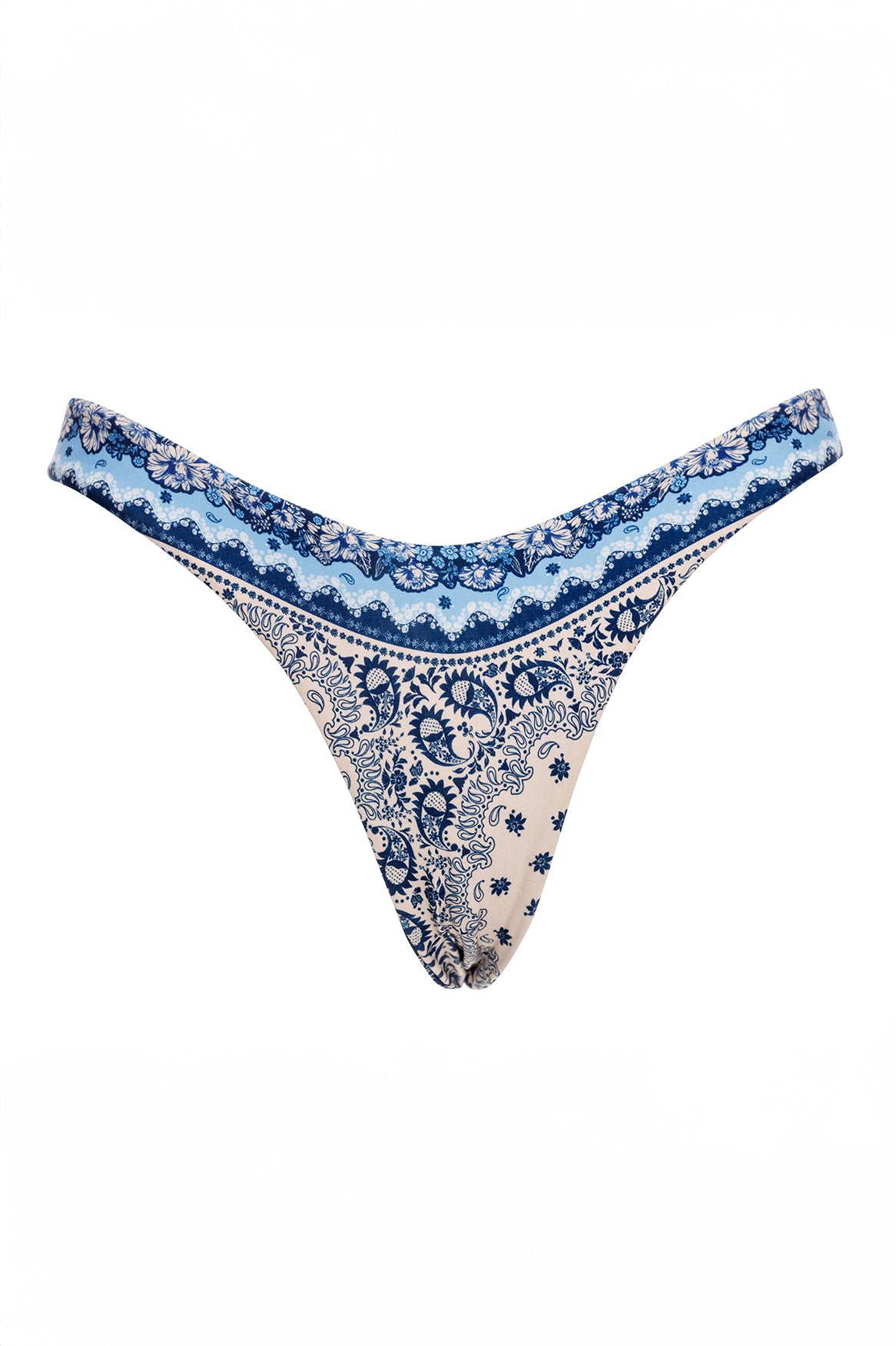 תחתון ביקיני בגזרה גבוהה עם הדפס בנדנה נועז ועל-זמני. עם קו מותן מקופל וגימורים חלקים שמחמיאים לגוף, זהו פריט שהוא גם נוח, גם ורסטילי, וגם מלא סטייל. הגזרה הלטינית מספקת כיסוי בינוני, והעיצוב הדו צדדי מעניק שני לוקים בפריט אחד.